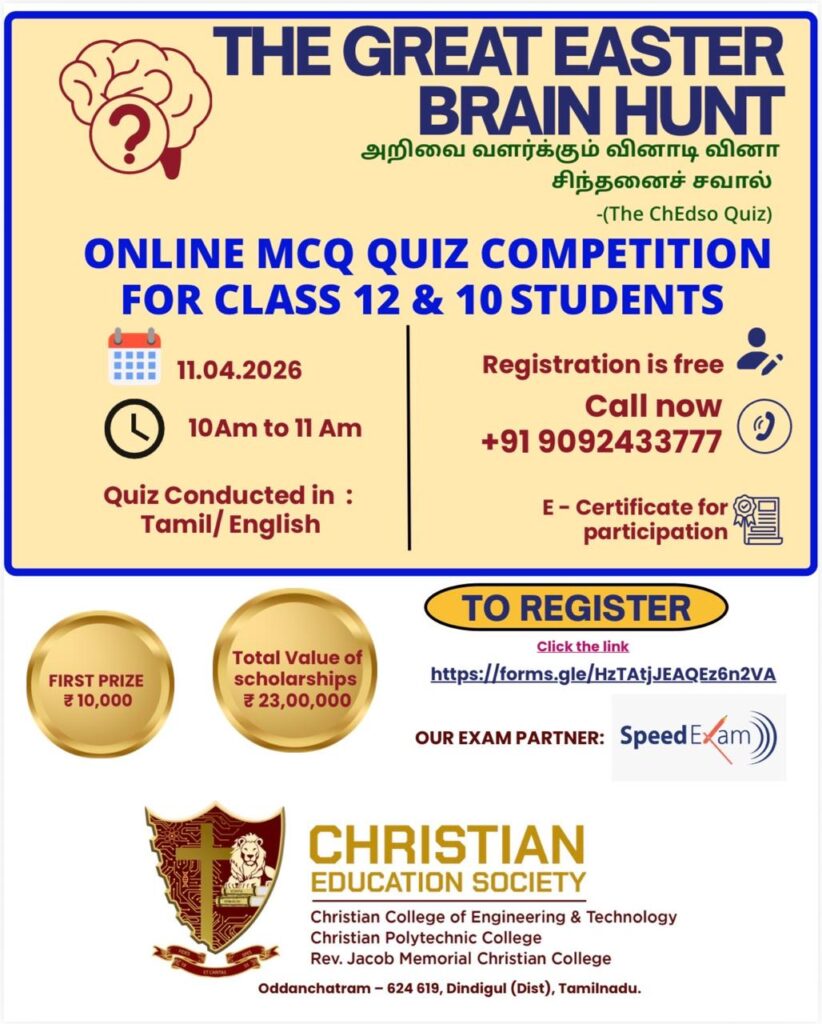 The first self financing college in Dindigul district was founded by Padma Bhushan Late Dr. Jacob Cherian and Dr. Mrs. Mary Cherian in the year 1997. The college has been successful in providing quality education, thanks to the dynamic leadership and guidance of our honourable President Prof. Dr. Tom Cherian, one of the beloved sons of the Founders. The college is affiliated to Madurai Kamaraj University and approved by UGC, New Delhi with 2(f) and 12 (b) status. We invite you to join our NAAC reaccredited college which offers courses in emerging areas in Arts, Science and commerce disciplines with a special focus on training youth as successful IT professionals, businessmen, entrepreneurs, teachers and above all fine human beings.